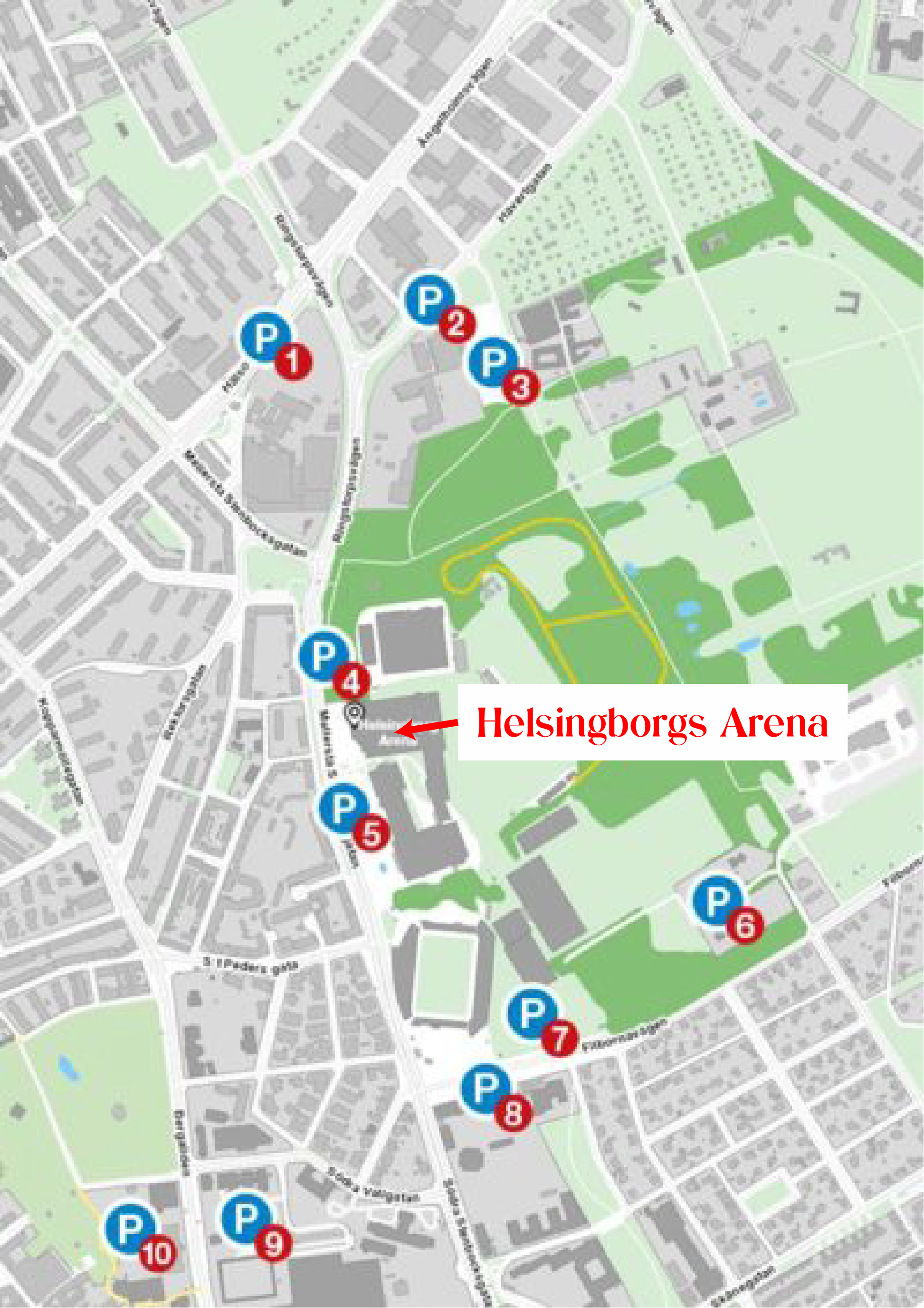 Här hittar du mer information kring parkeringsplatser runt arenan och Olympia Park.
